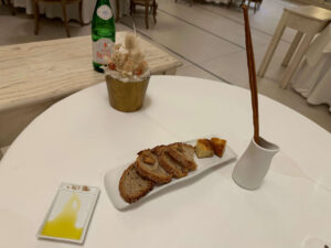 ボローニャのレストランではコース料理というとミシュラン星付きのレストランや、それに準じるレストランが多いですが、この店は比較的リーズナブルな価格で、しかもコース料理が3種類あります。3種類のうちわけは、郷土料理で1つ、魚料理で1つ、ベジタリアンで1つで、郷土料理のコース以外は創作です。この創作がなかなかセンスいいのに値段も控えめです。内装含めて雰囲気も相当洗練されています。