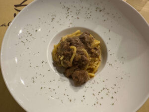 イタリアの代表的な料理を、食材を少し変えてみたり味変要素を盛り付けてみたりして、味わいを少しだけアップデートした料理が多いレストランです。全く別のものにするほどの創作をしているわけではないのであくまでイタリア料理の原型を残したまま、現代的なアレンジにしているので、食べていて結構楽しめます。