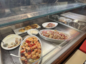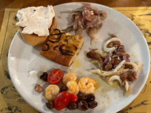 店名通り、魚介料理中心のレストランです。最近のイタリア現地のレストランは昔に比べると量が少なくなってきたように思いますが、このレストランは量も含めて昔のイタリアを踏襲しているように思います。味もおいしいので、パドヴァで郷土料理を食べたい場合、1つの候補になりうるでしょう。