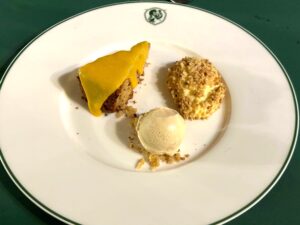 | Tonda e gentile…(Gelato alla Nocciola,Torta Morbida e Crema di Zabaione) ヘーゼルナッツのジェラート、柔らかいケーキとザバイオーネクリーム 8,00ユーロ Tarte Tatin con Crème Fraiche タルト・タタンとクレームフレーシュ (SFG)木の実類は含みません。 6,00ユーロ Pina Colada ピナ・コラーダ (SG) (SL) (SFG)グルテン、乳製品、木の実類は含みません。 5,00ユーロ I nostri Savoiardi Bagnati con l’Espresso Damosso su Crema al Mascarpone エスプレッソ・ダマッソに浸した自家製サヴォイアルディとマスカルポーネクリーム (SFG)木の実類は含みません。 6,00ユーロ Le Cinque Consistenze del Cioccolato 食感5種のチョコレート 7,00ユーロ Caffè Damosso,Cremoso freddo al caffè con Panna all’Anice Stellato e Spuma di Caffè Amaro カッフェ・ダマッソ、八角風味の生クリームを加えたコーヒー風味の冷たいクリームとブラックコーヒーのスプーマ 7,00ユーロ Il Babà servito con Crema Pasticcera e panna (la quantità di rum a vostro piacere) ババ (カスタードクリームと生クリーム、ラム酒の量はお好みで) (SFG)木の実類は含みません。 7,00ユーロ Minestrone di Frutta e Verdure con sorbetto alla fragola 果物と野菜のミネストローネ、苺のシャーベット添え 6,00ユーロ |