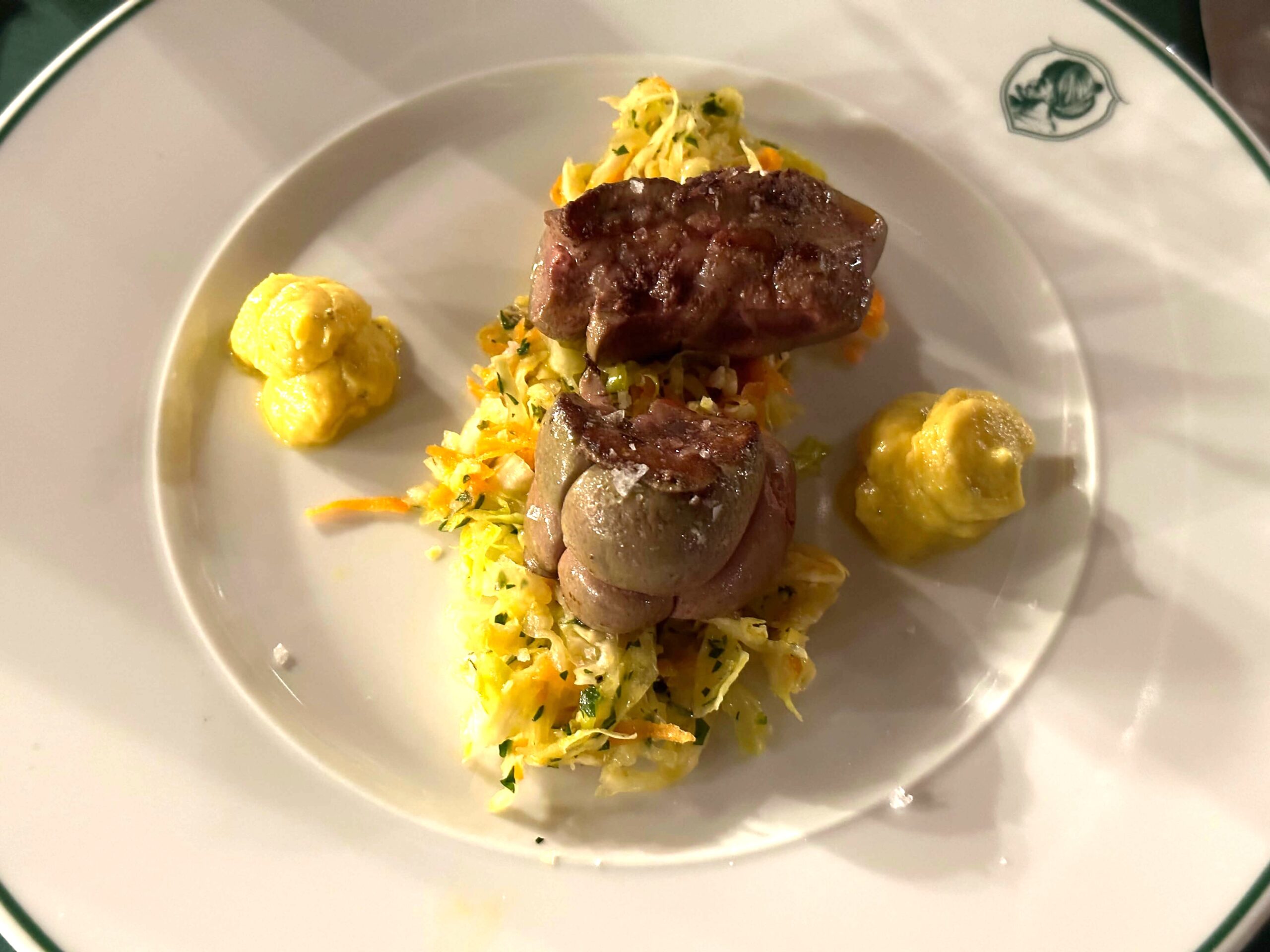 | I tre Assaggi di : Battuta al Coltello,Insalata di Carne e Albese con Castelmagno 三種類の味見:タルタル、肉のサラダとアルバ風カルパッチョとカステルマーニョチーズ (SG) (SFG) (SC)グルテン、木の実類、甲殻類は含みません。 12,00ユーロ 2008… Vitello tonnato alla nostra maniera 当店風仔牛のツナソース (SG) (SL) (SFG) (SC)グルテン、乳製品、木の実類、甲殻類は含みません。 10,00ユーロ Gazpacho con gamberi in Pasta Kadaifi パスタカタイフィの中に入った、海老のガスパチョ (SFG)木の実類は含みません。 12,00ユーロ Magnum di Foie Gras de Canard con Riduzione di Aceto Balsamico e Pan Brioche con Marmellata di Albicocche アイスバーマグナムのような、鴨のフォアグラと煮詰めて濃縮したアチェートバルサミコ酢、 杏ジャムのブリオッシュ添え (SC)甲殻類は含みません。 14,00ユーロ Julienne di Calamaretti e Mazzancolle appena scottati d’ispirazione Ligure リグーリアのインスピレーション、軽く火を通したヤリイカの千切りと車海老 (SG)グルテンは含みません。 13,00ユーロ Tonno di Coniglio delle Terre dei Savoia con Bagnet Verd e Bagnet Rus テッレ・ディ・サヴォイアのうさぎのトンノ、バニェット・ヴェルデ(緑のソース)とバニェット・ルス(赤いソース)添え (SL) (SFG) (SC)乳製品、木の実類、甲殻類は含みません。 12,00ユーロ Finissima di Polpo con Crema di Patate affumicate e Bottarga di Muggine di Cabras 燻製したジャガイモのクリームとカブラスのボラのカラスミのタコのカルパッチョ (SG) (SL) (SFG) (SC)グルテン、乳製品、木の実類、甲殻類は含みません。 12,00ユーロ Uovo Barzotto con Gamberi rossi di Mazzara crema di piselli 半熟ゆで卵と赤海老、グリンピースのクリーム添え (SL) (SFG) 乳製品、木の実類は含みません。 14,00ユーロ Crudo di pesce 生魚 (SG) (SL) (SFG) (SC)グルテン、乳製品、木の実類、甲殻類は含みません。 20,00ユーロ L’insalata Russa オリヴィエ・サラダ(ロシア風サラダ) (SG) (SL) (SFG) (SC)グルテン、乳製品、木の実類、甲殻類は含みません。 9,00ユーロ |